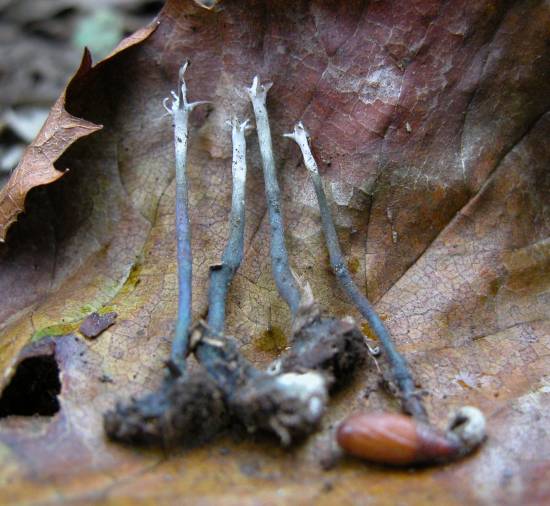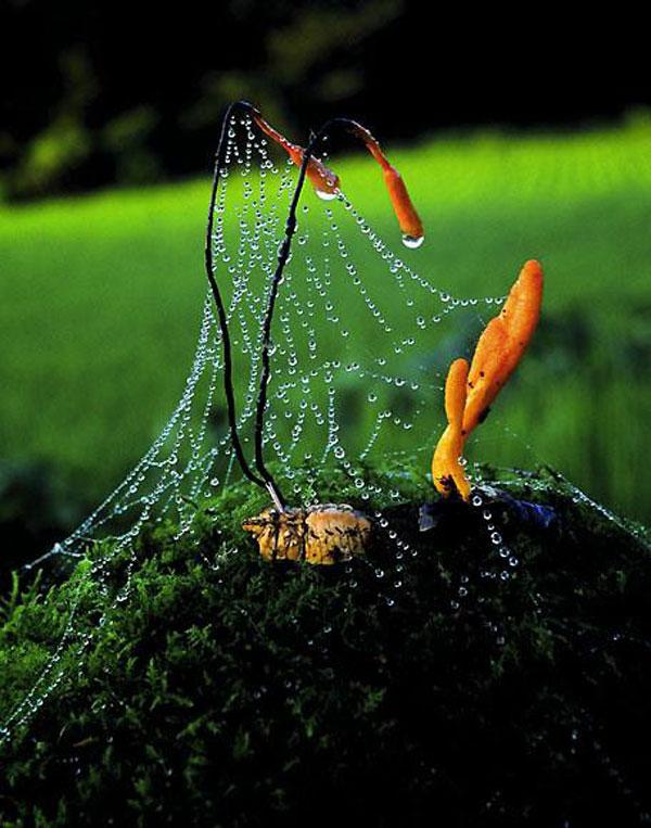 메뚜기목외에 거미에게도 기생하는 것이 있다. 이들 균은 숙주를 죽이고 곤봉 모양 또는 줄 모양 등의 자실체를 낸다. |